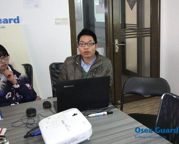 2016年2月17日上午歐西建科王洪波總經理主持新年開訓儀式,并向大家講解了歐西企業的現狀和發展歷程及防水情況。