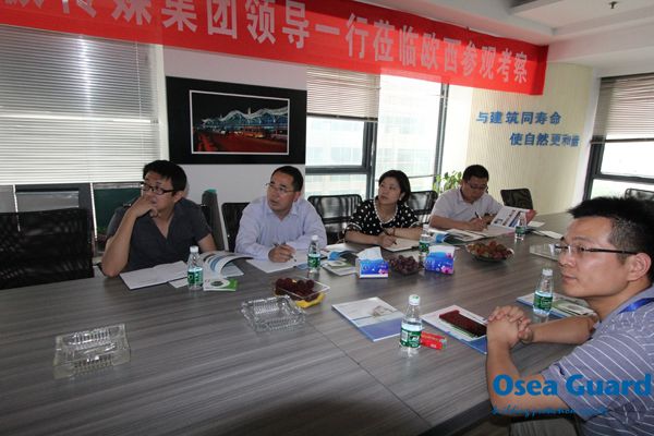 考察組一行觀看了企業宣傳片,并聽取了技術服務部經理趙德君關于企業概況、產品研發、工程施工等方面的情況介紹。在認真聽取情況介紹后,鳳凰傳媒集團工程部經理陶貴寧對歐西近年來的發展給予了高度評價,并就如何加強鳳凰傳媒集團與歐西深入合作進行了交流、探討。