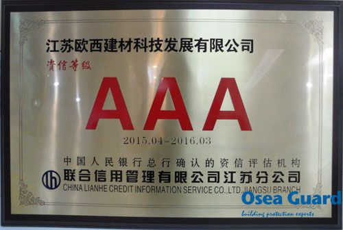 2015年4月,江蘇歐西建材科技發(fā)展有限公司和江蘇歐西建設(shè)工程有限公司被中國人民銀行總行行確認(rèn)的資信評估機(jī)構(gòu)—聯(lián)合信用管理有限公司江蘇分公司評為AAA等級(jí)。 這是對江蘇歐西多年來誠實(shí)守信、依法經(jīng)營的肯定,也標(biāo)志著公司在企業(yè)信用建設(shè)方面再一次取得實(shí)質(zhì)性成果,必將進(jìn)一步增強(qiáng)公司的市場競爭力。 江蘇歐西始終重視質(zhì)量信用建設(shè),大力倡導(dǎo)“知信用、守信用、用信用”的良好氛圍,自成立以來從未有違紀(jì)違法和失信行為,為公司的健康發(fā)展?fàn)I造了良好的資信環(huán)境。 |