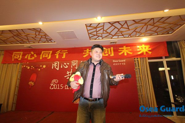 2015年2月12日,江蘇歐西“同心同行,共創(chuàng)未來—2015年江蘇歐西旺年會”在洪澤湖國際大酒店成功舉行,江蘇歐西全體員工江蘇省防水協(xié)會相關(guān)領(lǐng)導(dǎo)、歐西代理商等歡聚一堂,喜迎羊年。