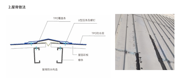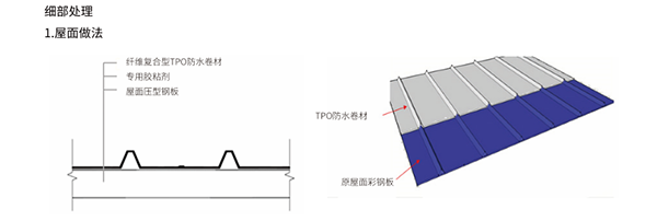 2.3材料優勢—耐化學性 TPO防水卷材具有較強的抵抗酸堿鹽等化學腐蝕能力,能滿足各種復雜地下環境中使用的要求。 浸泡28天 2.4強度高、延伸率大 (TPO)防水卷超過500%的斷裂延伸率,確保適應基層變形; 2.5巨大的屋面維修市場 (1)我國待修屋面知多少?2014年中國建筑防水協會與北京零點市場調查與分析公司聯合發布《2013年全國建筑滲漏狀況調查項目報告》,在所調查的2849棟樓房中,有2716棟的屋面存在滲漏問題,屋面滲漏率為95.33%。 (2)傳統屋面防水翻新市場現狀 局部修復,打掉保護層、保溫層、找平層和防水層,從新再做。方法陳舊、材料質量與施工不可靠、質量無保證。 粘貼普通SBS瀝青卷材;垃圾?陳舊的屋面鏟除再遭破壞? (3)鋼屋面如何修復? 2.6、TPO維修專用 產品執行標準--GB 18173.1-2012 卷材長20米寬2米;搭接邊10公分;厚度0.8+覆布;重量:0.8KG/㎡ 輔料:水泥基面用水泥粘結膠料和鋼屋面用氯丁膠、固定用壓條、鋼釘。 2.7TPO覆布的選擇(水泥基層濕鋪法) 覆布選用的是丙丙(PP)長纖針刺無紡布,針刺的作用是將纖網加固成蓬松的布。 耐腐蝕;抗菌、抗化學藥劑:丙丙無紡布屬化學鈍性物質,不蟲蛀,抗菌、堿腐蝕、成品不因侵蝕而影響強度。 與基層粘結度高:水泥粘結漿料滲透到基層,通過微裂縫、水化毛細孔形成栓卯,同時滲透到蓬松的無紡布內體,通過水泥粘結漿料把卷材與基層結構形成不可分的一體。滿粘率達百分之100,有效的杜絕竄水,達到防水的完美效果。 卷涂結合:涂料彌補了基層的缺陷,形成一道剛型防水層,粘結柔性的卷材,剛性與耐腐蝕卷材的結合,使防水壽命永不失效; 2.8維修做法 2.9水泥屋面(不用鏟除舊屋面也可采用濕鋪加固定) |
