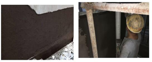 從背水面解決防水滲漏 吸水性展示-卡斯通管實驗 刷水潤濕 →抹灰→表面處理→養護→效果 |