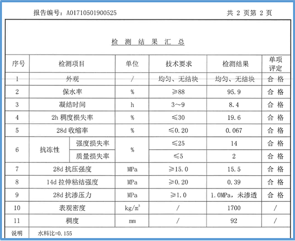 三、砂 漿 越來越多的住宅小區通過建造地下車庫等大型地下室增加生活空間,地下面積的增加將導致地下室出現滲漏的機率增長。 數據表明,隨著建成時間不斷靠近,地下室滲漏率并未因工藝和材料的進步而降低,在一定程度上也印證了這一點。 3.1砂漿檢測報告 (1)GB/T984--2011:重要指標《吸水率》 (2)對于多孔的水泥砂漿而言,吸水率越低,則外界有害離子進入砂漿內部越困難,砂漿的耐久性越好。 (2)TWE984防水砂漿同時防腐 氯離子滲透性測試:按照DL/T5126-2001中6.8的規定進行,其中制備砂漿試件尺寸70.7mmX70.7mm,試件在標準試驗條件下養護,在氯化鈉溶液中浸泡天數為7d。 |