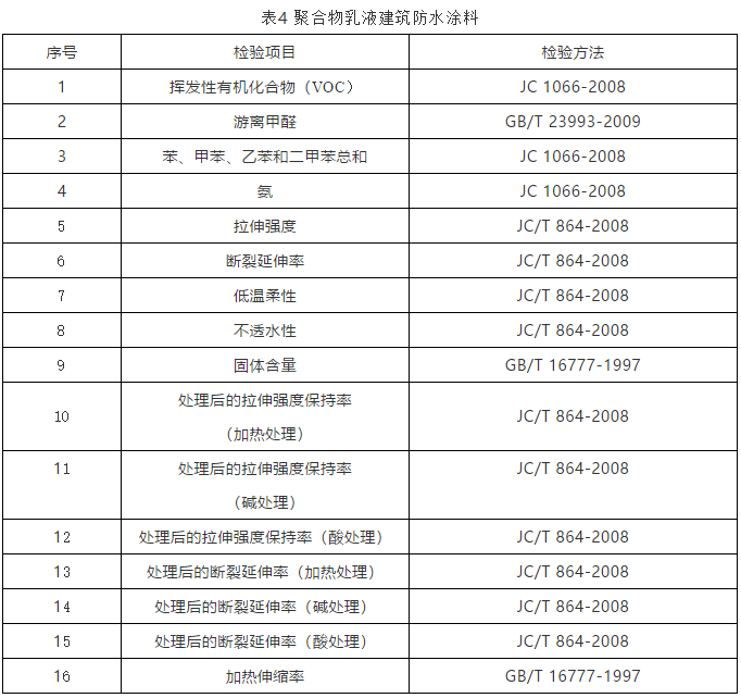 3 判定規(guī)則 3.1依據(jù)標(biāo)準(zhǔn) GB/T 19250-2013 聚氨酯防水涂料 GB/T 23445-2009 聚合物水泥防水涂料 JC/T 408-2005 水乳型瀝青防水涂料 JC/T 864-2008 聚合物乳液建筑防水涂料 JC 1066-2008 建筑防水涂料中有害物質(zhì)限量 現(xiàn)行有效的企業(yè)標(biāo)準(zhǔn)、團體標(biāo)準(zhǔn)、地方標(biāo)準(zhǔn)及產(chǎn)品明示質(zhì)量要求 3.2判定原則 經(jīng)檢驗,檢驗項目全部合格,判定為被抽查產(chǎn)品合格;檢驗項目中任一項或一項以上不合格,判定為被抽查產(chǎn)品不合格。 若被檢產(chǎn)品明示的質(zhì)量要求高于本細(xì)則中檢驗項目依據(jù)的標(biāo)準(zhǔn)要求時,應(yīng)按被檢產(chǎn)品明示的質(zhì)量要求判定。 若被檢產(chǎn)品明示的質(zhì)量要求低于本細(xì)則中檢驗項目依據(jù)的強制性標(biāo)準(zhǔn)要求時,應(yīng)按照強制性標(biāo)準(zhǔn)要求判定。 若被檢產(chǎn)品明示的質(zhì)量要求低于或包含本細(xì)則中檢驗項目依據(jù)的推薦性標(biāo)準(zhǔn)要求時,應(yīng)以被檢產(chǎn)品明示的質(zhì)量要求判定。 若被檢產(chǎn)品明示的質(zhì)量要求缺少本細(xì)則中檢驗項目依據(jù)的強制性標(biāo)準(zhǔn)要求時,應(yīng)按照強制性標(biāo)準(zhǔn)要求判定。 若被檢產(chǎn)品明示的質(zhì)量要求缺少本細(xì)則中檢驗項目依據(jù)的推薦性標(biāo)準(zhǔn)要求時,該項目不參與判定。 (本文來自市場監(jiān)管總局網(wǎng)站) |