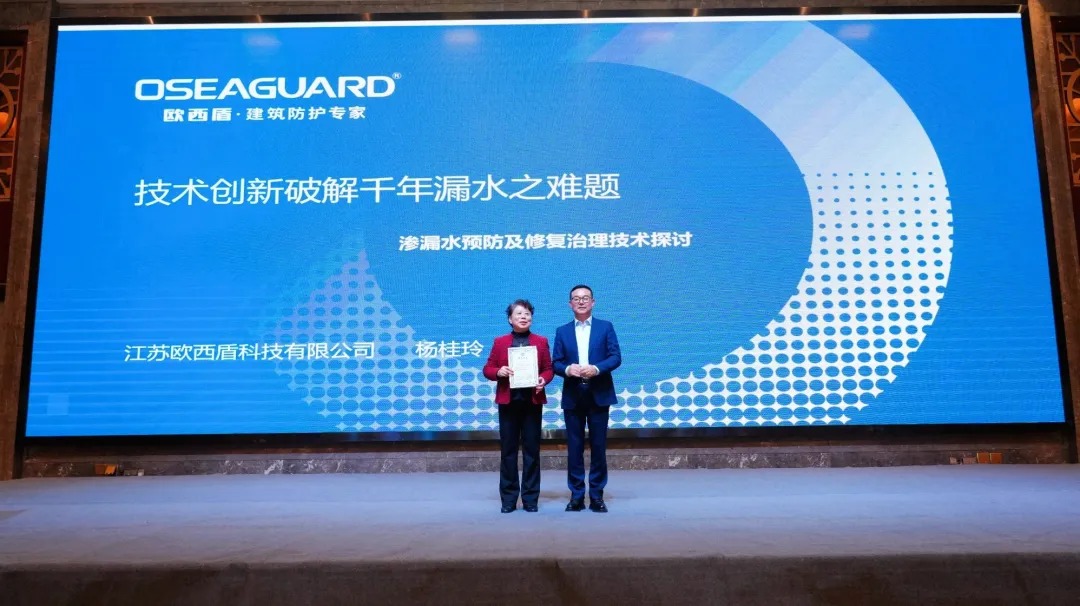 在大會核心技術交流環節,歐西盾副董事長楊桂玲女士帶來題為《技術創新破解千年漏水之難題》的專題報告,重點介紹了OXD復合防水系統“與建筑同壽命”的理念及其在地下室、隧道、橋梁等場景的應用方案。為行業同仁破解漏水難題提供了寶貴的參考思路,現場掌聲不斷。
