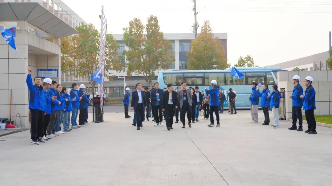 下午,滿載參會人員的大巴車緩緩駛入江蘇歐西盾科技有限公司廠區,廠區門口早已懸掛起醒目的歡迎橫幅,歐西盾員工代表列隊迎接,以熱情的笑容和貼心的引導,向遠道而來的行業同仁致以最誠摯的歡迎。