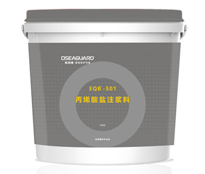 EQB®-501丙烯酸鹽注漿液是一種由多種金屬氧 化物、氫氧化物和丙烯酸反應生成的丙酸鹽鹽注漿液,在多種助劑的作用下,發生自由基反應由線性高分子,發生交聯生成網格狀高分子的凝膠體。凝膠體不溶于水、強度高、彈性大、粘結性強、耐腐蝕性能優良、收縮小,是新一代防水堵漏材料,徹底解決其他材料堵漏后反復滲漏的難 題,是當代三大防水堵漏材料之一。